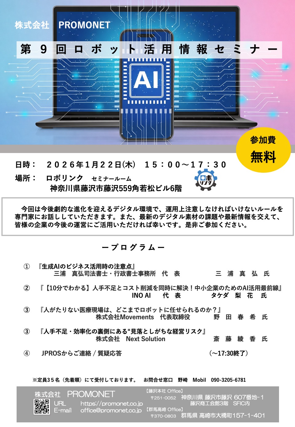 セミナーまたは懇親会参加ご希望の際は、こちらのフォームからご応募ください。