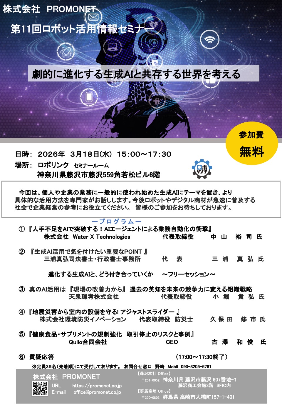 セミナーまたは懇親会参加ご希望の際は、こちらのフォームからご応募ください。